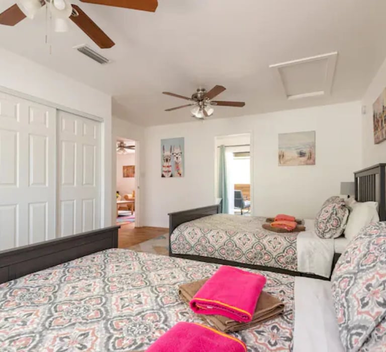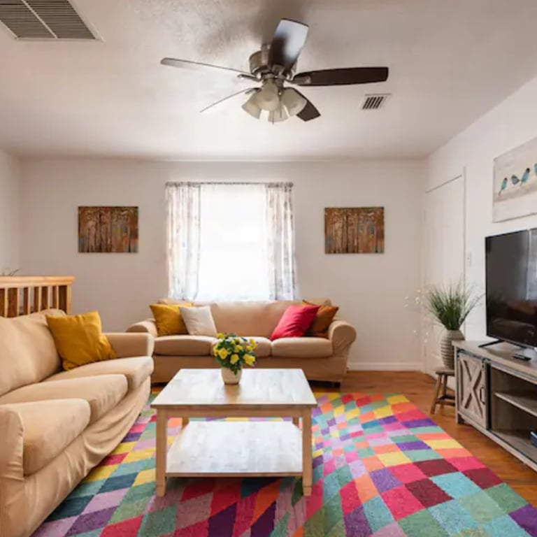 This spacious two-story vacation rental in Largo, Florida is perfect for large families, group vacations, and extended beach stays near Clearwater Beach and Indian Rocks Beach. This family-friendly 4-bedroom, 2-bathroom unit comfortably accommodates up to 12 guests, offering generous living space across two levels.